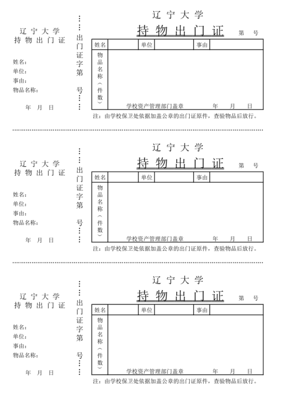 附件:《辽宁大学持物出门证》